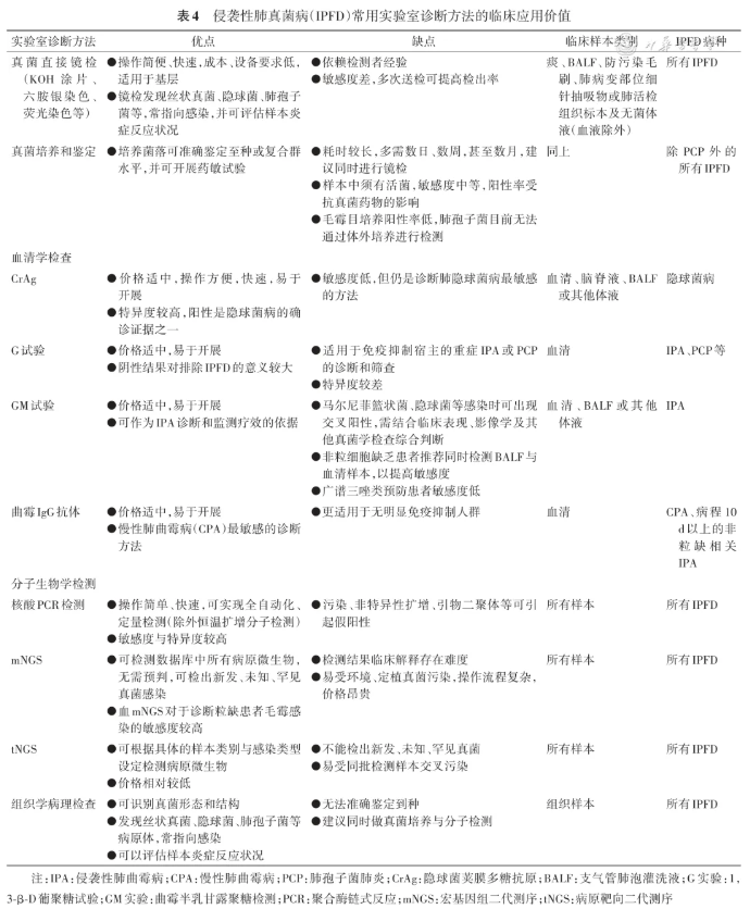 临床诊断(probable):同时具备至少1项危险因素(表2)、1项临床特征(表3)及以下任何1项微生物学证据:(1)下呼吸道标本霉菌/隐球菌培养或镜检阳性;(2)外周血或BALF的PCR/mNGS/tNGS检出真菌(念珠菌除外);(3)外周血曲霉抗原GM值>0.5;(4)肺泡灌洗液曲霉抗原GM值≥1.0。