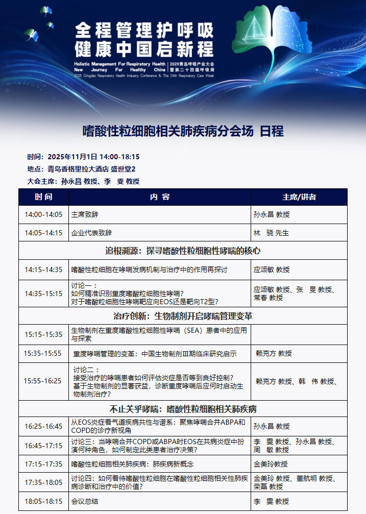 嗜酸性粒细胞相关肺疾病分会场丨第二十四届呼吸周